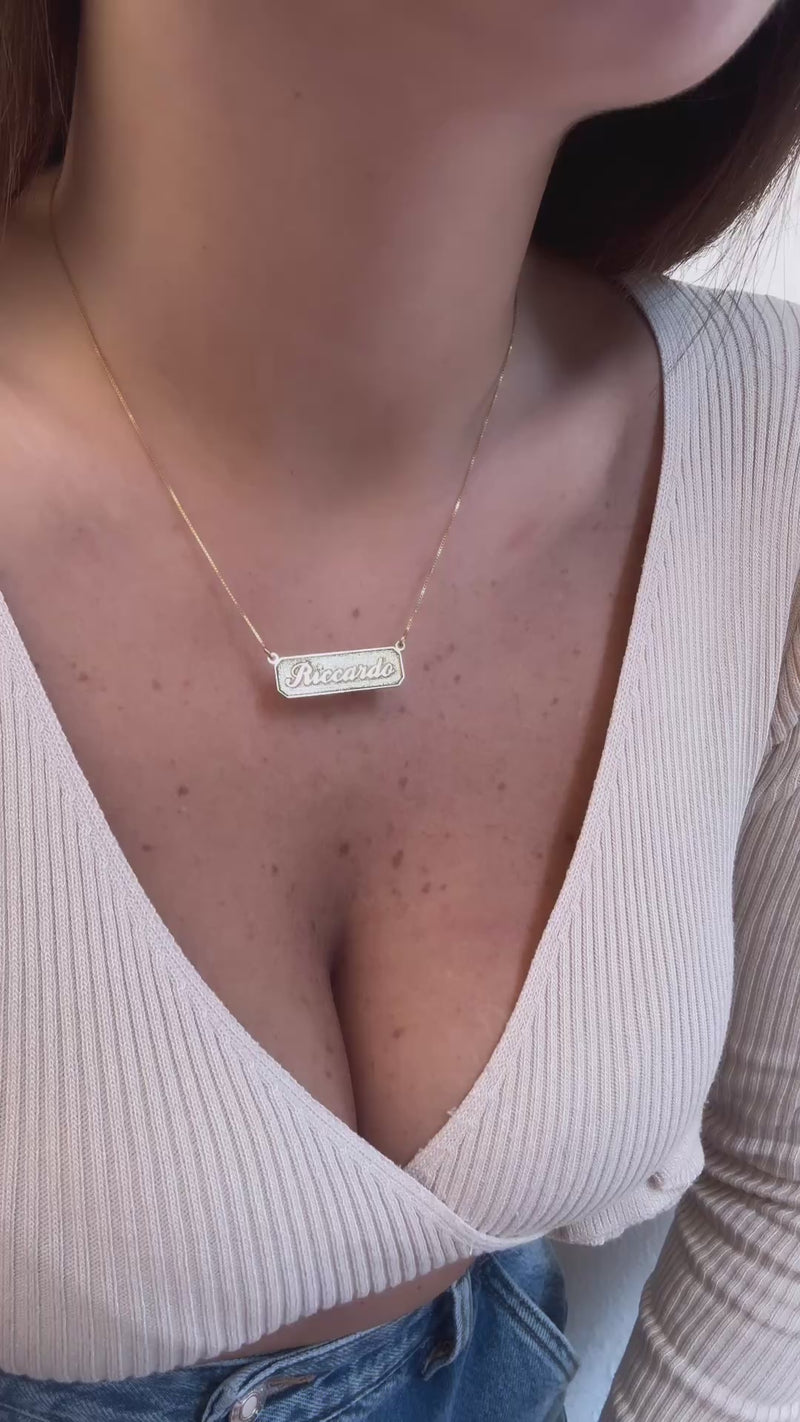 La collana “Targhetta d’amore” è realizzata in ARGENTO 925, personalizzabile con qualsiasi nome o data.