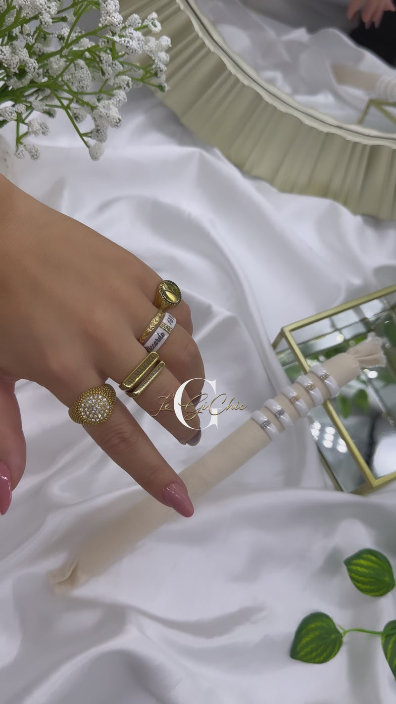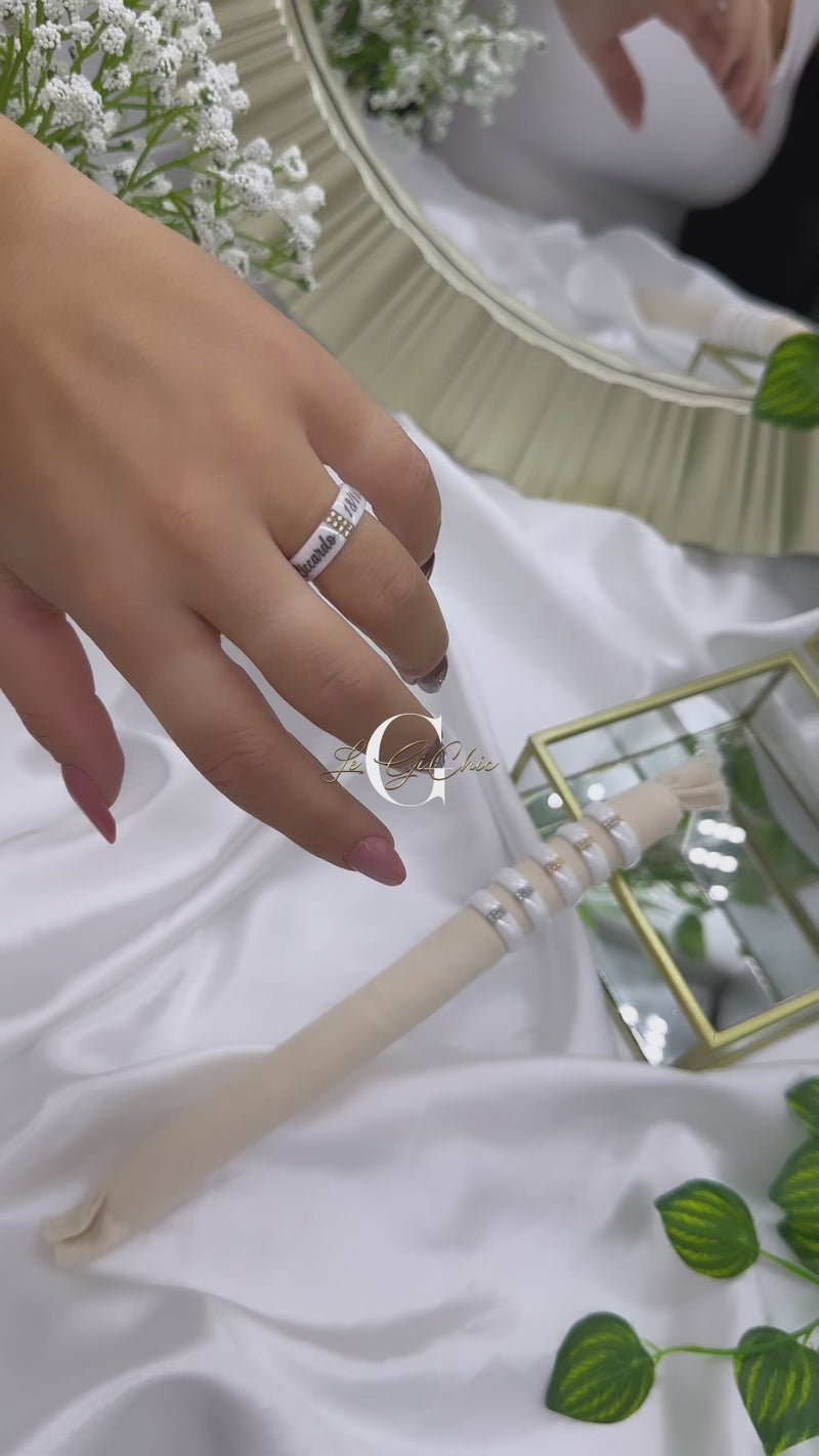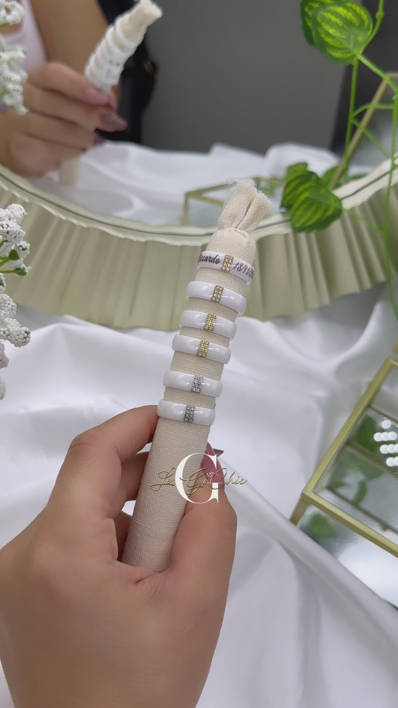La “fascia in ceramica con strass centrali” è personalizzabile con incisione.