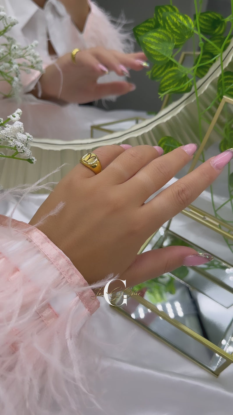 Lo chevalier “Round” liscio per mignolo è in acciaio inossidabile (non scambia) ed è personalizzabile con incisione, a vostra scelta.